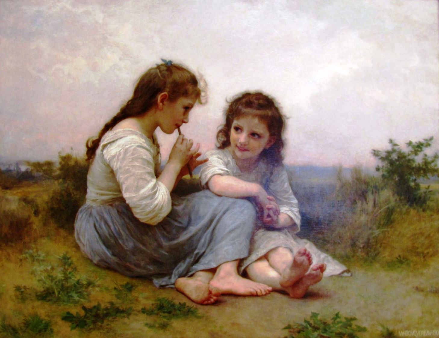Your oil painting reproduction of "A Childhood Idyll" by William-Adolphe Bouguereau will be handmade to replicate all the brushstroke details, colors, and shading of the original work of art. Please be assured that you will receive a magnificent oil painting.