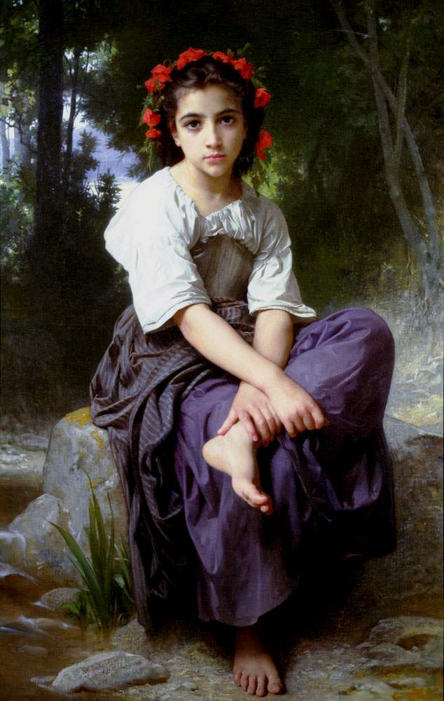 Your oil painting reproduction of "At The Edge Of The River" by William-Adolphe Bouguereau will be handmade to replicate all the brushstroke details, colors, and shading of the original work of art. Please be assured that you will receive a magnificent oil painting.