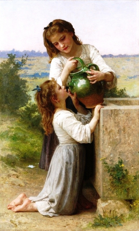 Your oil painting reproduction of "At the Fountain" by William-Adolphe Bouguereau will be handmade to replicate all the brushstroke details, colors, and shading of the original work of art. Please be assured that you will receive a magnificent oil painting.